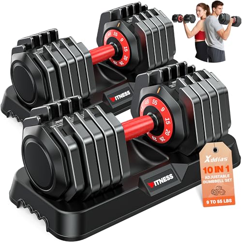 XDDIAS upgrade 10 in 1 adjustable dumbbell set weight range(9/15/20/26/29/35/40/44/48/55LBS). More even weight distribution helps you get into better shape without having to worry about the burden of overweight upgrades