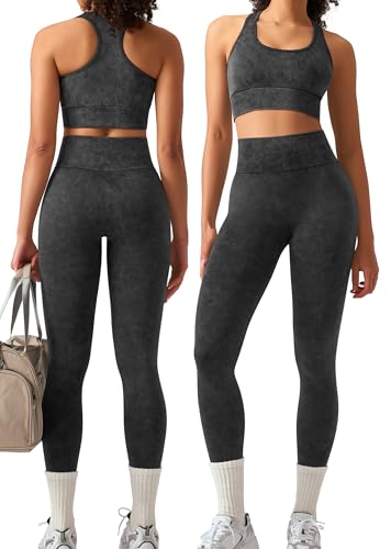 OIERD 4 Piece Workout Sets For Women Ribbed Leggings Clothes...