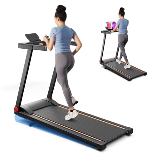 Space Saving for Small Spaces & Apartments: Effortlessly move our lightweight treadmill with wheels from bedroom to patio. No Assembly Hassles, The portable treadmill features a 4.13 in height for easy storage under beds or sofas, ideal for compact living and maximizing your workout.
