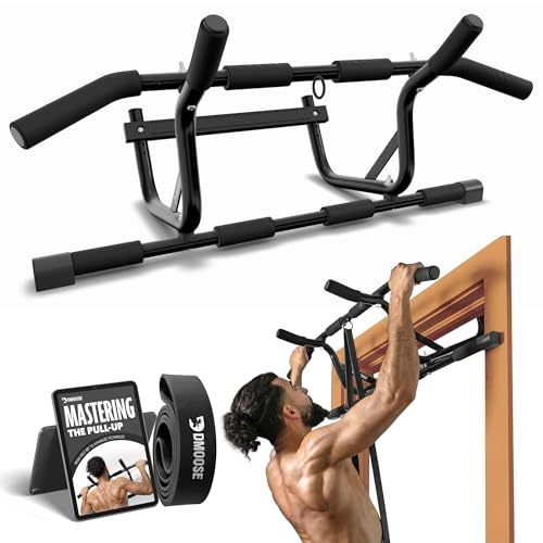 MULTIPLE GRIP OPTIONS: The DMoose Door Pull Up Bar with Pull Up Band offers a wider grip & better stretch with higher placement for more headroom. Its extended range of motion targets muscles effectively while doing push up, pullups for maximizing results from home workouts.
