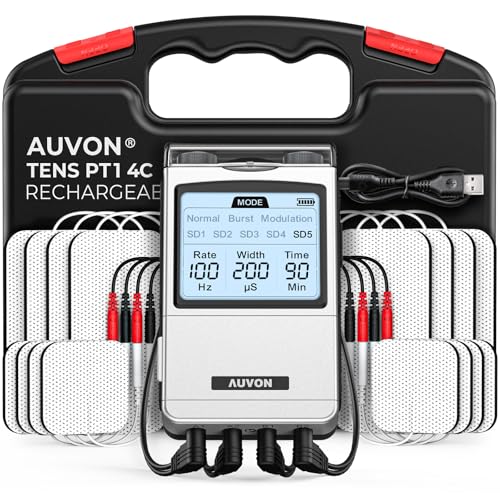 AUVON Rechargeable 4-Channel TENS Unit Muscle Stimulator for...