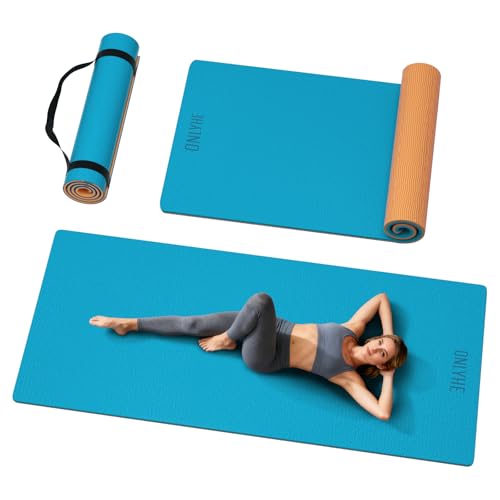 Yoga Mat Non Slip TPE Extra Wide Yoga Mat with Alignment Mark, 72"L x 32"W x 0.32"/0.24"Th (183cm x 80cm x 8mm/6mm), Anti-Tear Exercise Mat with Carrying Strap and Bag, Workout Mats for Yoga, Pilates
