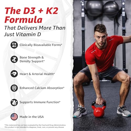 Essential Duo: Our D3 K2 vitamin 5000 IU combines two an important fat-soluble vitamins for overall health Reinforce. Vitamin D3 helps your body absorb calcium, at the same time as vitamin K2 directs calcium to your bones.