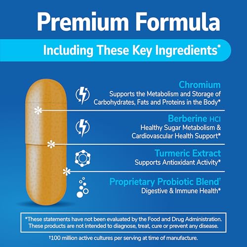 BOTANICAL & PROBIOTIC-RICH: Each serving (2 capsules) delivers Chromium, Berberine HCl, decaffeinated Green Tea Extract, Gymnema sylvestre, Turmeric, probiotics, L-Taurine, Resveratrol, and Boron to support your health, and fitness strategy