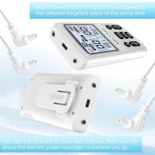 DUAL CHANNEL WITH TIME CONTROL – This device features A/B channels to target two body areas at simultaneously. Equipped with 8 electrode pads, it provides customizable pain relief for neck, back, shoulders, and more. You can operate it with different intensity settings for each channel. With portable size, it can be used in the office, car or travel on the go.Total body relaxation: use for back, knee, shoulder, ankles, wrist and elbow and make this the most powerful weapon for your body relax.