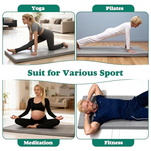 Extra Wide Extra Thick Workout Mat: Our fitness mat measures 72*32*3inch, offer adequate space to fit any type of exercise like yoga, pilates, and fitness exercise. 3 inch thick yoga mats which provide more make stronger and protection for your ankle, knees, joints, and body on hard floors, in addition to absorbs vibration and reduces noise.