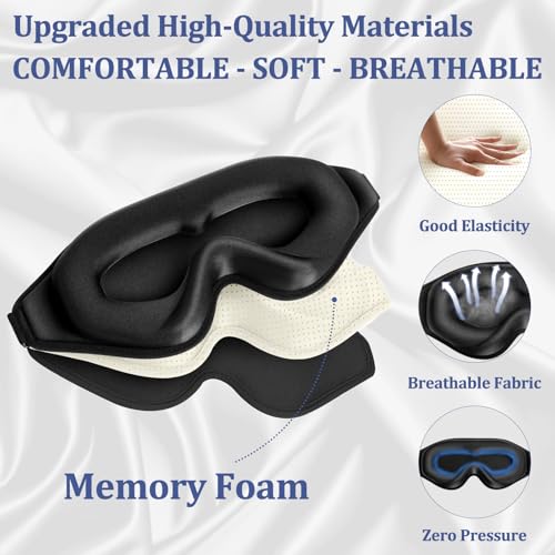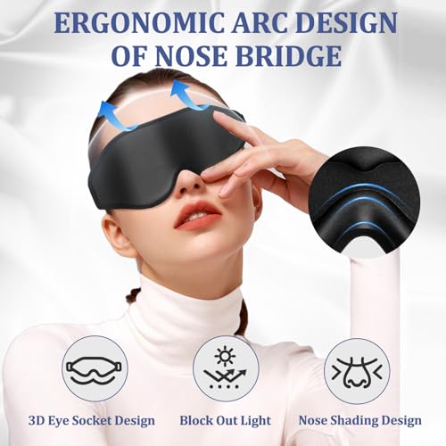 3D Contoured Zero-Pressure Design: Designed with ergonomic 3D deep eye sockets, this sleep mask provides ample space on your eyes and eyelashes, ensuring zero pressure and no contact with your lashes. Perfect for lash extensions and comfortable for all-night wear.