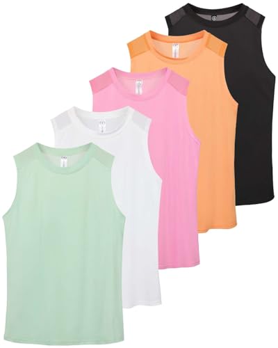 5 Pack Women’s Workout Tops, Athletic Racerback Tank Tops for Women, Mesh Sleeveless Shirts Yoga for Gym Running