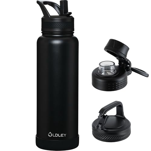 HYDROWION 32oz Stainless Steel Water Bottle(Cold for 48 Hrs, Hot for 24 Hrs),Double Wall Vacuum Insulated Water Bottle with Straw Lid, Spout Lid and Flex Cap, Fit in Any Car Cup Holder,Black
