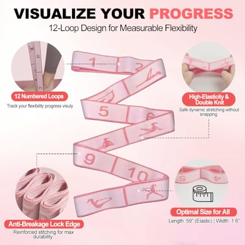 TRACK PROGRESS WITH NUMBERED LOOPS: See your flexibility make stronger visually! Unlike rigid static belts, our Stretchy Yoga Strap features 12 numbered loops, allowing you to trace milestones (e.g., “I moved from Loop 4 to 6!”) and adjust intensity precisely. The unique elastic construction provides gentle “give,” making it safer for Hamstring stretching, ACL Rehab, and splits training.