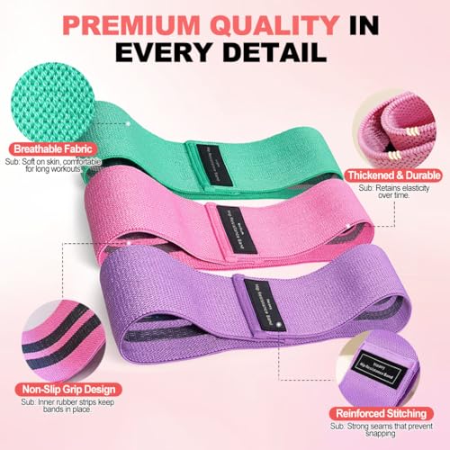 PREMIUM NYLON WEAVE – NO SLIPPING: Frustrated by rubber bands that snap or cheap cotton bands that fuzz? Our Fabric Workout Bands are crafted from a specialized Nylon & Latex blend. This material is smoother on bare skin, wider than competitors, and features robust inner Non-Slip grips to make sure they never roll up right through your Squats, Hip Thrusts, or Booty bridges.