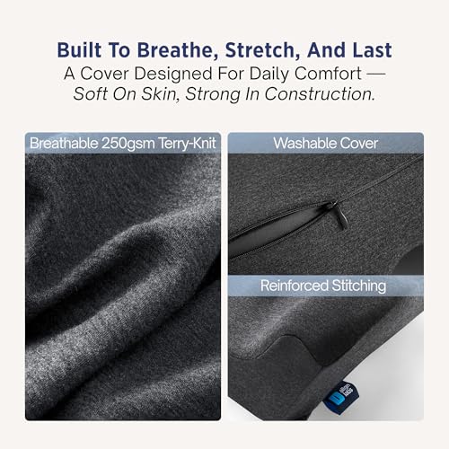 ✔ BREATHABLE COVER, EASY WASH: Soft, stretch Terry-Knit cover flexes with your posture and improves airflow all over long sits. Removable and machine-washable for on a regular basis clean — ideal as a back pillow for office chair, chair cushion for back pain, or couch back cushion.