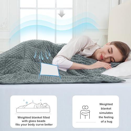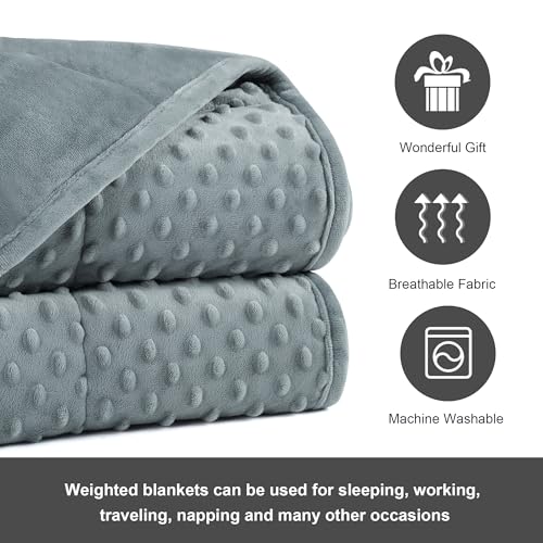 Alomidds Weighted Blanket (60″x80″,15lbs Queen Size – Grey), Weighted Blankets for Adults and Kids, Cooling Breathable Soft and Comfort Minky, Heavy Blanket Microfiber Material with Glass Beads