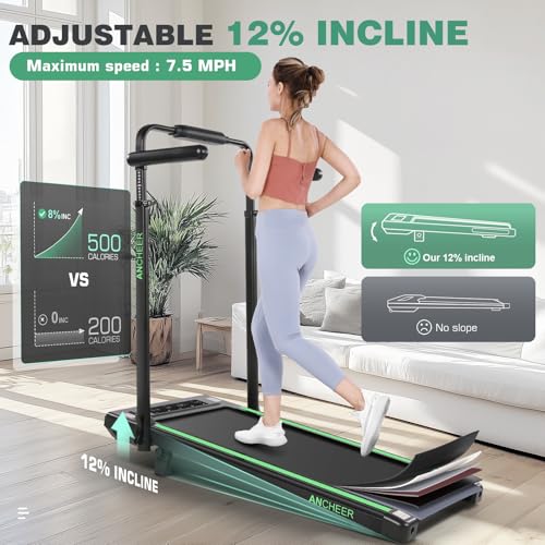ANCHEER 12%/15% Incline Treadmill 3.5HP Walking Pad Folding Under Desk Treadmills with Hand bar, Foldable 320-450lb Capacity Treadmill for Home/Office/Gym