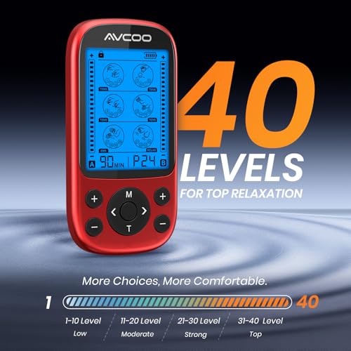 3-in-1 TENS Unit for Drug-free Body Pain Relief: The AVCOO TENS machine for pain management combines TENS, EMS, RELAX functions in it. This TENS massager can help alleviate body soreness and pain, such as pain in elbows, shoulders, back, knees, arms, legs, sciatica, and the pelvic region. The electrodes muscle stimulator suits for relieving chronic or acute pain without the need for pills.