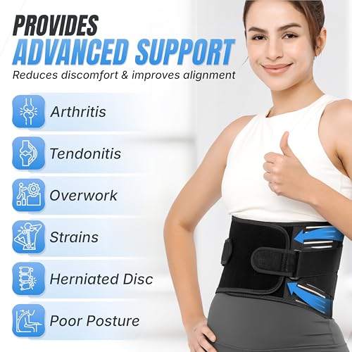 Back Brace for Lower Back Pain Relief | Sciatica Lumbar Support Belt for Men & Women, Adjustable Back Support Brace for Work & Daily Use, All-Day Comfort & Heavy-Duty Compression (Medium 33-38.9″)