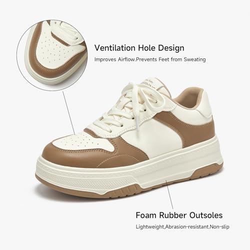 BEAU TODAY Women’s Fashion Sneakers, Chunky Platform Sneakers for Women, Casual Lace Up Non-Slip Walking Shoes, Comfortable Running Shoes for Women