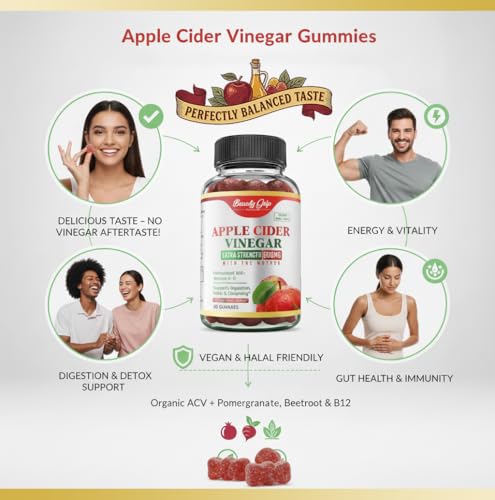 🍎 Organic Apple Cider Vinegar (with the Mother): Each and every gummy is packed with 600mg of unfiltered, raw, organic ACV for day by day detox, digestion, and immune reinforce—without the tough vinegar taste!