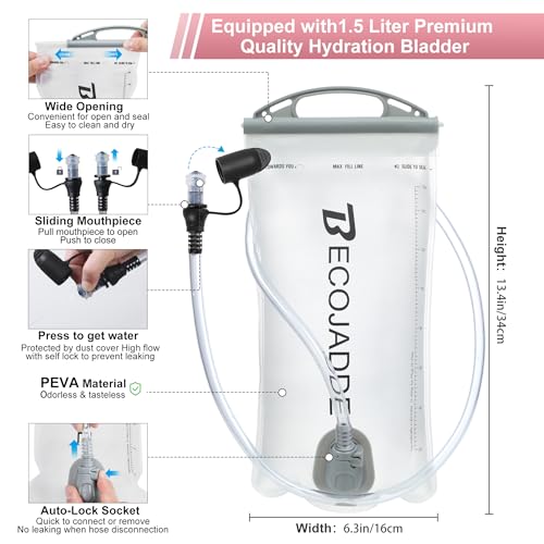 Ergonomic Design for Comfort: This mountain climbing backpack for water bladder with adjustable chest and dual waist straps for a protected fit. Includes a tube clip, sliding chest straps, and securing loops to minimize bounce, perfect for women and men right through mountain climbing, running, or workouts.
