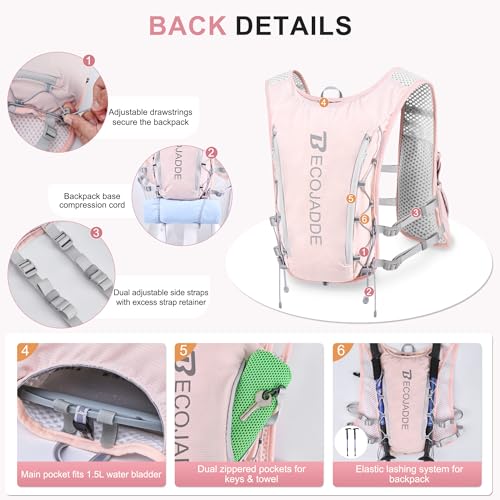 BECOJADDE Running Vest Hydration Backpack for Men Women, 5L Lightweight Running Backpack Hydration Pack for Marathon, Trail, Cycling, Hiking, Jogging