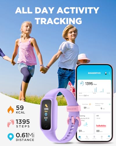BIGGERFIVE Vigor 2 L Kids Fitness Tracker Watch for Boys Girls Ages 5-15, Activity Tracker, Heart Rate Sleep Monitor, IP68 Waterproof, Pedometer, Calorie Step Counter Watch, Lilac