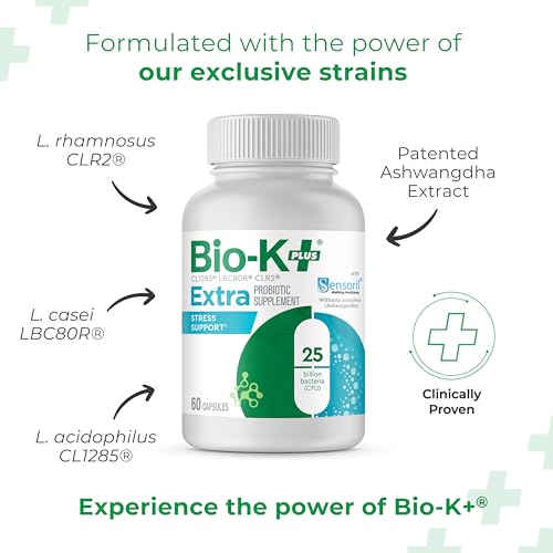 Face the challenges of modern life with Bio-K+ Extra Stress Beef up probiotic capsules. A revolutionary probiotic supplement that is engineered with 25 billion CFUs per two capsules to create an advanced formula that is your key to maintaining a balanced gut microbiome. At the core of Bio-K+ Extra Stress Beef up is Sensoril®, a patented Ashwagandha extract known for its distinctive affect on stress adaptation. We’ve harnessed the power of Sensoril® to create a supplement that goes beyond conventional probiotics. The result is a product that delivers prime quality probiotics to the digestive system, at the same time as also helping the body to cope with on a regular basis stress. The CFU count ensures a robust probiotic presence in every capsule, promoting a balanced gut environment. It includes our carefully cultured proprietary probiotic strains, including L. acidophilus CL1285®, L. casei LBC80R®, and L. rhamnosus CLR2®, selected for their unique contributions to the digestive system. We imagine in providing a product that aligns with diverse way of life choices without compromising on effectiveness. Subsequently, this product is vegan friendly, non-GMO, free from gluten and titanium dioxide and do not want to be refrigerated. Change into your approach to well-being with the power of probiotics and Sensoril® inside Bio K+ Extra Stress Beef up. *These statements have not been evaluated by the Food & Drug Administration. This product is not intended to diagnose, treat, cure or prevent any disease.