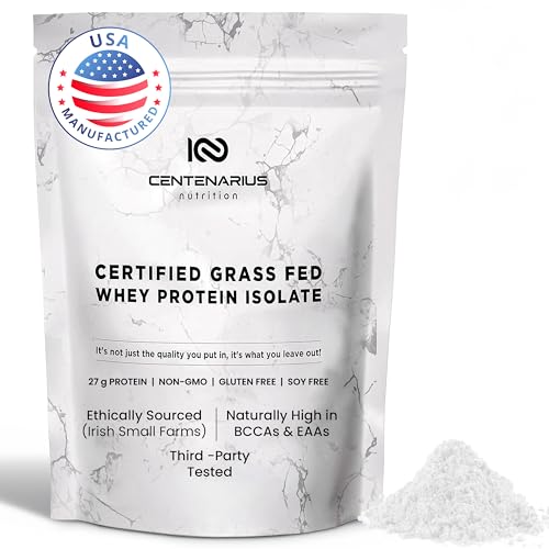 Premium Whey Protein Isolate Powder 500g Unflavored Irish Grass-Fed, 27g Protein per Serving for Muscle Growth & Recovery Non-Bloating, Gluten & Lactose Free, Clean Ingredients | Centenarius Nutrition