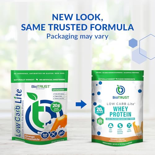 BioTrust Low Carb Lite, 20 Grams of Grass-Fed Whey Protein Isolate, 100 Calories, ProHydrolase Digestive Enzymes, Non-GMO, Free from Soy and Gluten, rBGH-Free (14 Servings) (Orange Cream)