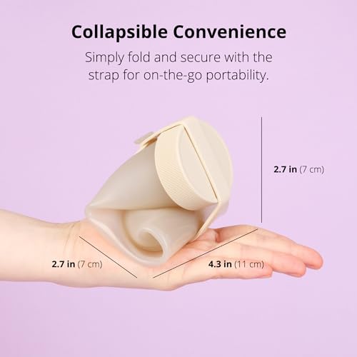 BLUE GINKGO Collapsible Water Bottle – Lightweight, Foldable Silicone Bottle for Travel, Hiking, and Camping (16.9oz, Made in Korea, Sand Beige)