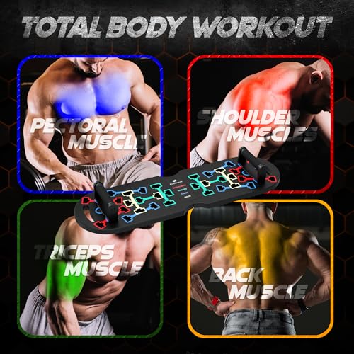 Everything You Need in One Set: The workout board arrives in a complete set with the tools you want to achieve maximum performance, including 1 x pushup board, 2 x set of resistance bands, 1 x anchor, 2 x handles, and 1 x rope as well as an exercise plan for a complete fitness experience!