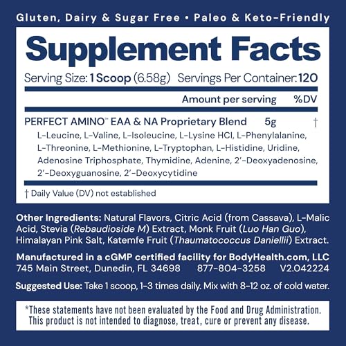 BodyHealth PerfectAmino Powder – BCAA and EAA Powder for Pre and Post Workout – Amino Acid Energy Drink for Men and Women to Support Lean Muscle and Recovery – Mixed Berry – 120 Servings