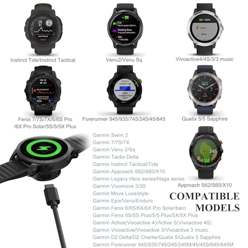 【Compatible Models】Wanme Charger Adapter Designed for Garmin Fenix 8, E, 7/7S/7X, 6/6S/6X, 5/5S/5X, Forerunner 965 955 945 935 745 265 255 245 165 158 45 45S, Instinct 1/2/2S/2X Tide Tactical, Venu 3/3S/2/Sq/Sq2 Music, Quatix 7/7 Pro, Vívoactive 5/4/4S/3 Music, Vivomove 3 3S Style Luxe Sport, Epix Pro Gen 2, Tactix 7/7 Pro; Enduro 3/2 DLC, Swim 2, D2 Delta PX, Vivosport, Garmin Smart 5. (Note: Please Check Your Watch Model Before Buy It. And No SmartWatch Included)