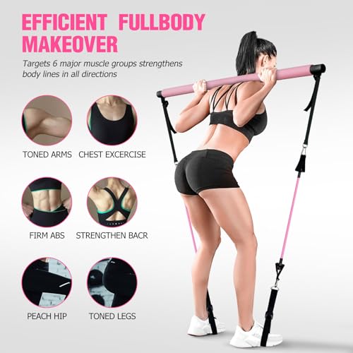 CINDALOG Pilates Bar Kit with Resistance Bands, Multifunctional Pilates Bar for Women & Men with Heavy-Duty Metal Adjustment Buckle, Pilates Home Equipment for Full Body Workouts