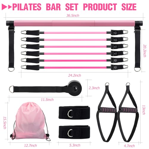 Superior Yoga Pilates Bar Kit: The CINDALOG pilates set is the most complete pilates home equipment available on the market. It has 1 Multifunctional Pilates Bar, 2 Resistance Bands Handles, 2 Non Slip Foot band, 3 Pair Exercise Bands:20, 30, 40LBS, 1 Door Anchor, 2 Workout Guide, 1 Carry Bag, 1 Box. Multiful matching of pilates gym accessories and resistance bands mean you can enjoy the most professional workout at home
