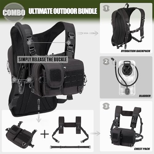 CLTAC 2-in-1 Convertible Chest Pack and Hydration Backpack with 2.5L Water Bladder, Adjustable Molle Hydration Vest for Women Men Outdoor Hiking Gravel Cycling Mountain Biking Running