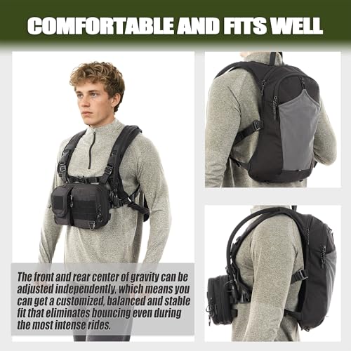 【Smart Storage, Easy Access】 – The chest pack features multiple pockets that keep essentials organized and within reach. Store radio, phone, keys, cards, and snacks up front. The backpack compartment holds your bladder, cloth, towel, helmet, and more. Everything stays protected and accessible on the move.