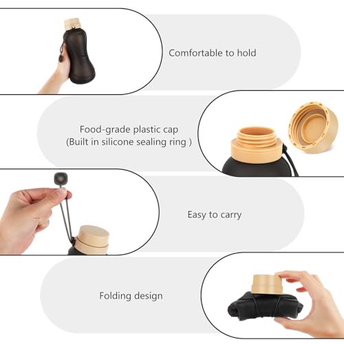 Collapsible Water Bottles,650ml,Leak Proof,Reuseable BPA Free Silicone Foldable Water Bottles,Durable Lightweight for Travel Gym Camping Hiking,Compact Size Portable Sports Water Bottle (Black)