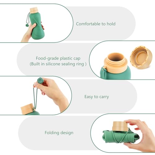 Collapsible Water Bottles,650ml,Leak Proof,Reuseable BPA Free Silicone Foldable Water Bottles,Durable Lightweight for Travel Gym Camping Hiking,Compact Size Portable Sports Water Bottle (Green)