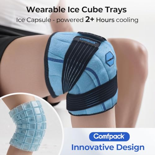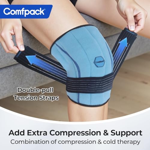 Comfpack Knee Ice Pack Wrap, 2 Hours Long Lasting Coldness Ice & Compression Therapy Flexible Ice Pack for Knee Replacement Surgery, Arthritis Pain, ACL, Swlling, Sports Injuries(23″ × 10.3″)