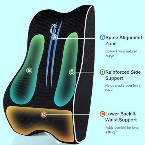 𝗘𝗿𝗴𝗼𝗻𝗼𝗺𝗶𝗰 𝗦𝗵𝗮𝗽𝗲 𝘄𝗶𝘁𝗵 𝗛𝗶𝗴𝗵-𝗗𝗲𝗻𝘀𝗶𝘁𝘆 𝗠𝗲𝗺𝗼𝗿𝘆 𝗙𝗼𝗮𝗺: The ergonomic design helps fill the natural curve of your lower back. High-density memory foam provides balanced reinforce without feeling too hard or bulky.