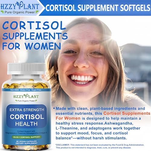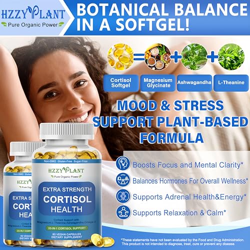 EASY-TO-TAKE CORTISOL HEALTH SOFTGELS: Say goodbye to sugary cortisol supplements for women gummies, and hard-to-swallow cortisol support capsules—our liquid-filled cortisol supplements for women&men softgels offer a clean, effective way to support adrenal balance. Each serving combines adaptogenic ashwagandha, L-theanine, omega-3, magnesium to help regulate cortisol levels. Our softgels are designed for superior absorption and gentle digestion—no sugar, no fillers, just plant-based support.