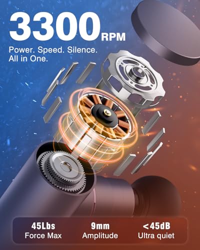 4 Adjustable Speeds with Strong Performance: Make a choice from 4 speed levels — 1600, 2200, 2700, and 3300 RPM — for precise intensity regulate. With 9mm amplitude and 45 lbs max force, it penetrates deep into muscle tissue for effective pain relief and faster recovery. Automatically shuts off after 10 minutes for safety and battery protection.