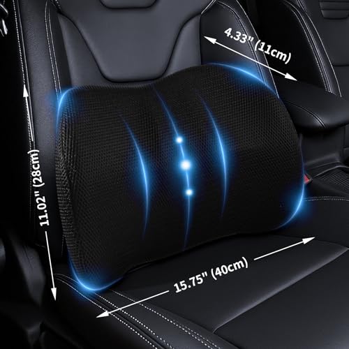 Dijialun Lumbar Support Pillow for Car, Memory Foam Back Support Lumbar Pillow for Car, Gaming, Office Chair, Ergonomic for Lower Back Pain Relief, Softness Breathable Removable Mesh Cover, Black