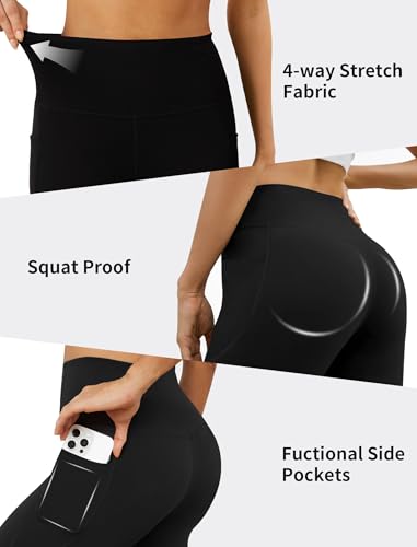 DLOODA Women's Flare Leggings with Pockets Crossover High Waisted Bootcut Yoga Pants Tummy Control Bell Bottom Leggings