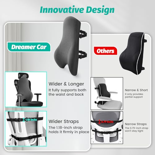 Dreamer Car High Back Support for Office Chair Fully Support Entire Back for Comfort,Pain Relief and Posture Improved- Memory Foam Lumbar Support Pillow for Office Chair,Recliner