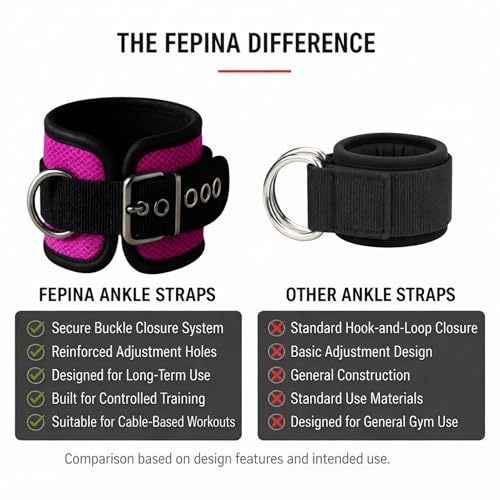 SECURE BUCKLE CLOSURE FOR HEAVY LOAD TRAINING: Designed with a reinforced belt-style buckle closure, these ankle straps provide a more protected fit than standard hook-and-loop designs. The structured closure helps scale back shifting throughout heavy cable exercises, supporting stable and controlled leg and glute workouts.