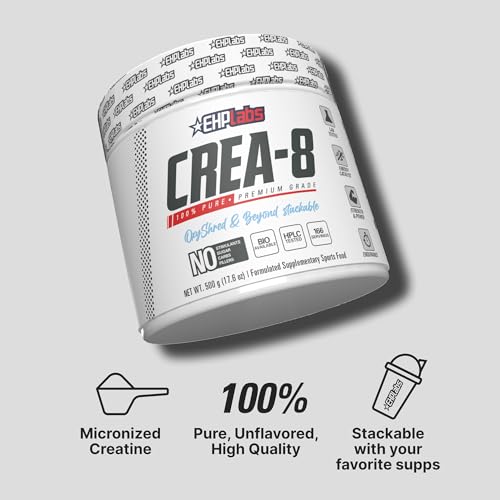 EHP Labs CREA-8 Micronized Creatine Monohydrate Powder – Unflavored Creatine Powder for Muscle Growth, Increased Strength, Enhanced Energy Output and Improved Performance – 100 Servings (500g)
