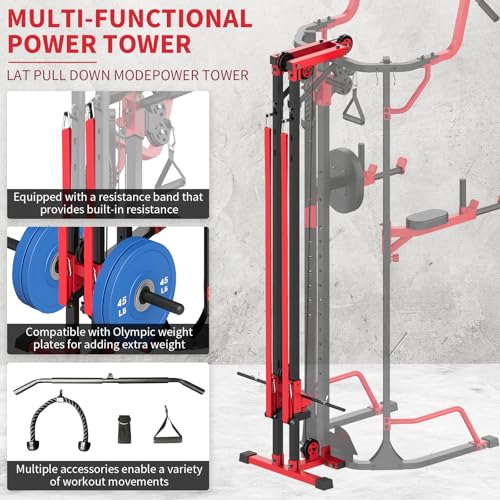 ALL-IN-ONE FITNESS: This workout eouipment combines all functions of a power tower and a lat pull down machine, allowing users to perform various exercises with and less floor space