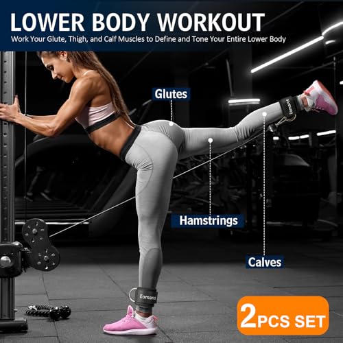 Eomarce 2PCS Set Premium Cable Kick Back Ankle Straps for Cable Machines Women & Men, Glute Kickback Ankle Strap for Workout, Ankle Cuff Cable Attachment Wraps weights, Tobilleras Para Mujer Gym Leg