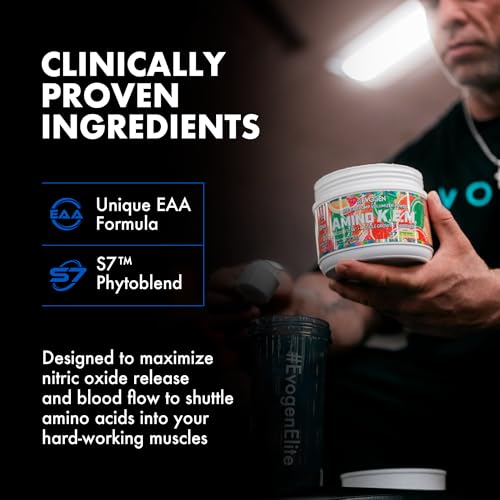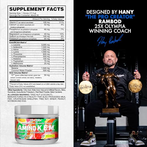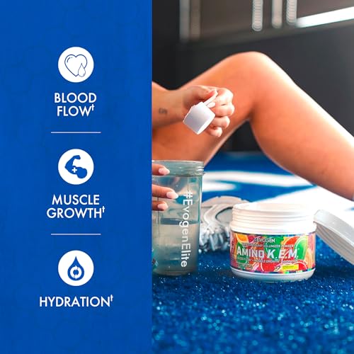 Evogen Amino K.E.M. – EAA & BCAA Powder Pump Volumizer | BCAAs Amino Acids Supplement for Blood Flow, Muscle Growth, & Hydration | Citrus Candy | 30 Servings
